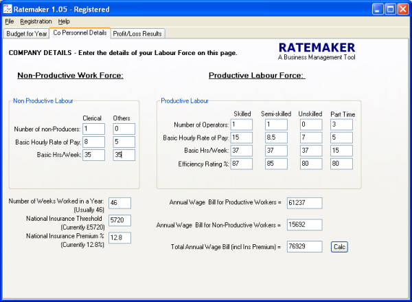 Remember to enter the current National Ins Rate and Threshold, then click the "Calc" button before moving to the next page.